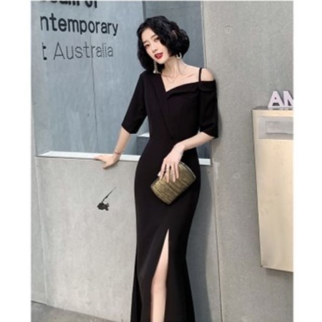 エレガントドレス スリッド ベアトップ オフショルダー ロング 2colors ka459