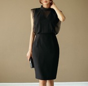 ボディラインを美しく見せるハイウエストデザインがポイントのタイトドレス。袖なしで涼しげな印象を与え、シンプルながらもエレガントなスタイルを演出します。また、ミディアム丈のスカートは大人っぽく、ノースリーブ仕様で女性らしい肌見せも叶います。シフォン素材を使用しているため、軽やかな着心地で長時間着用してもストレスを感じません。