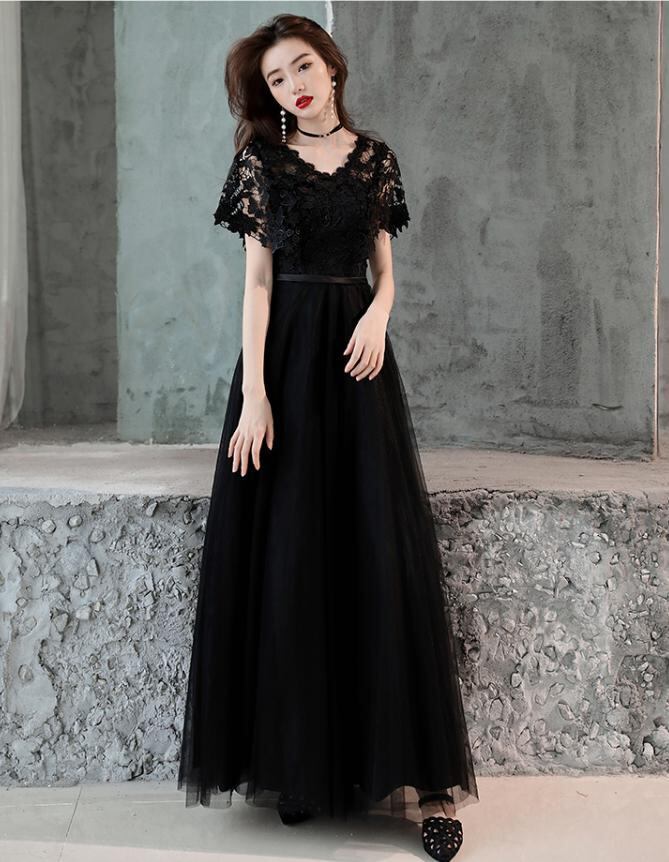 Vネック 花柄 刺繍レース 半袖 Aライン ロング丈 イブニングドレス S〜3L ka25