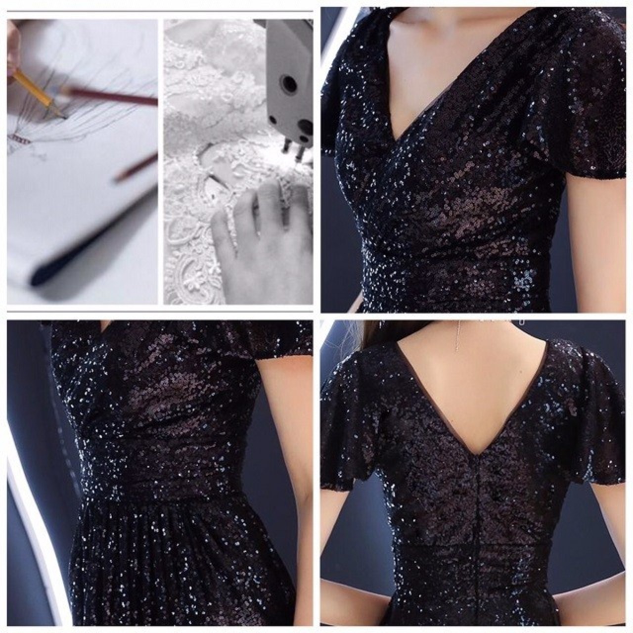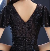 総スパンコールのキラキラ光る華やかな存在感のあるイブニングドレスです。