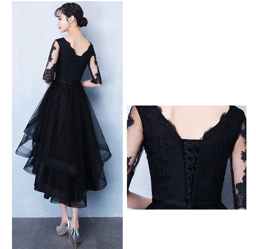 シースルー スリーブ 花柄 刺繍 レース フィッシテール ドレス ワンピース 5分袖 S〜3L ka97