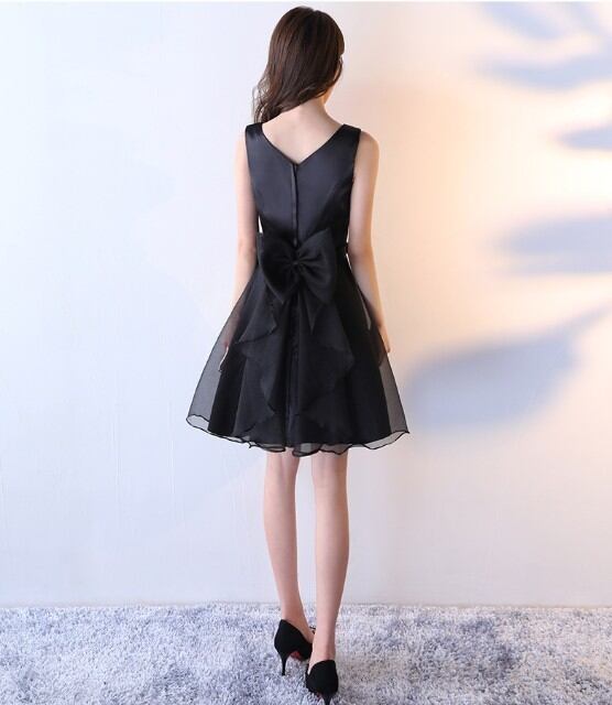 バックリボン フリル レース Vネック ノースリーブ ミニドレス ミニ丈 ワンピース ドレス XS〜3L ka99