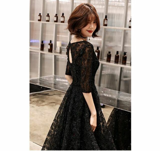 キラキラドレス ロングドレス 5分袖 花柄 レース パーティー ワンピース バックシャン S〜3L ka173