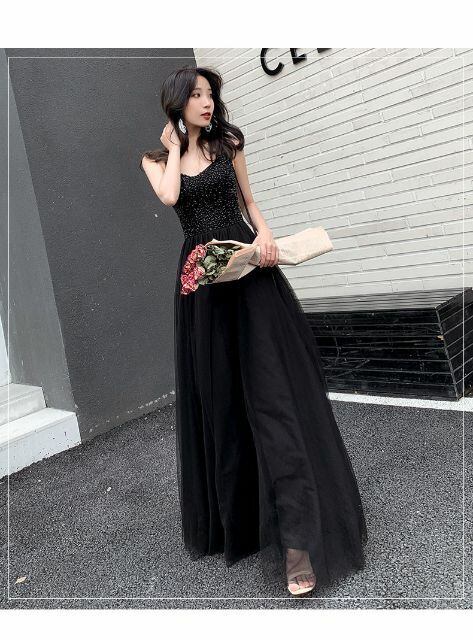 【人気商品】肩紐 Vネック ロング パーティー ドレス ビーズ付き イブニング ドレス S〜4L ka201