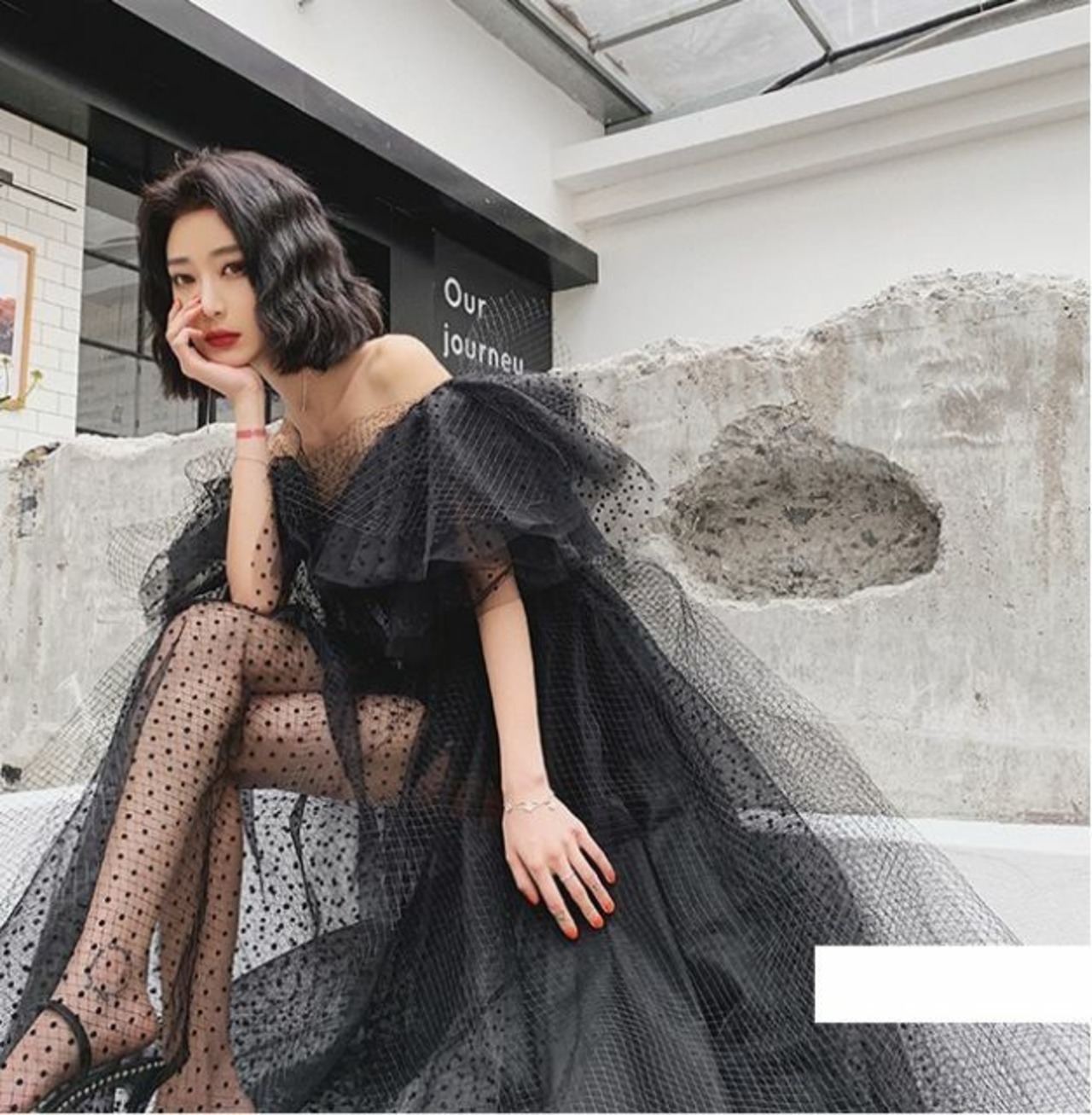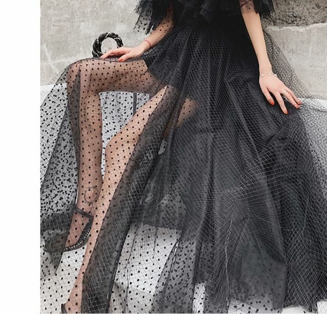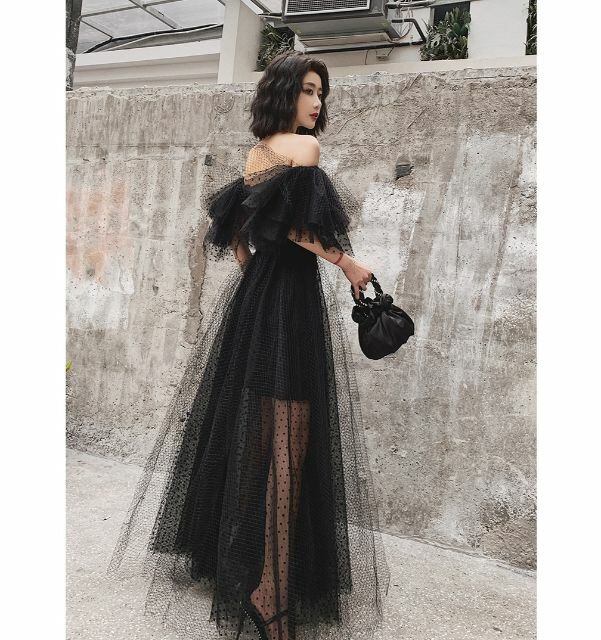 とてもゴージャスでドットレースを使った透け感ドレスです。