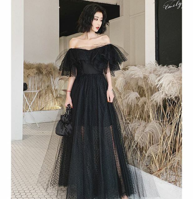 ゴージャス レース ドレス ブラック シースルー 透け ベアトップ ロング S〜3L ka202