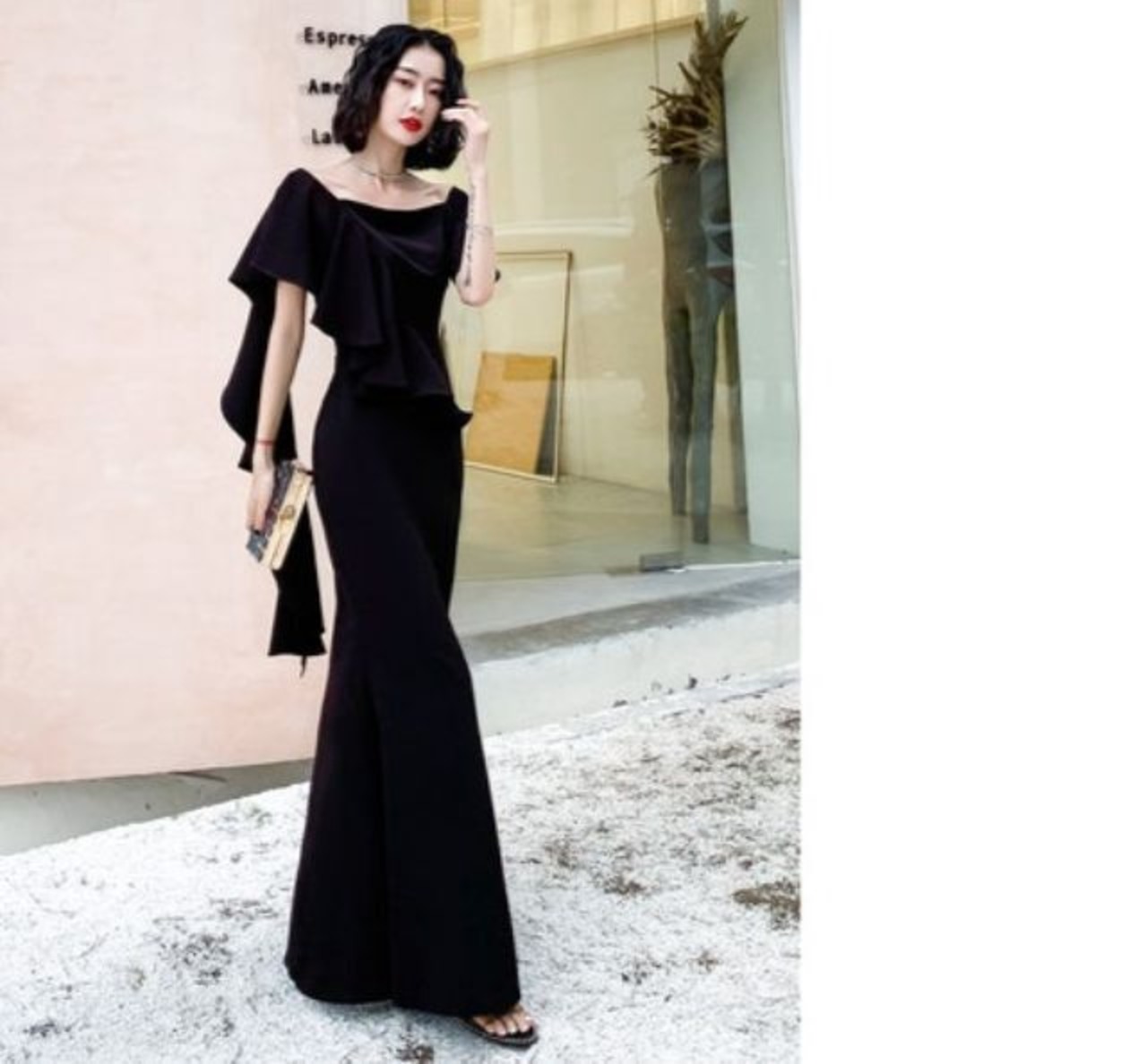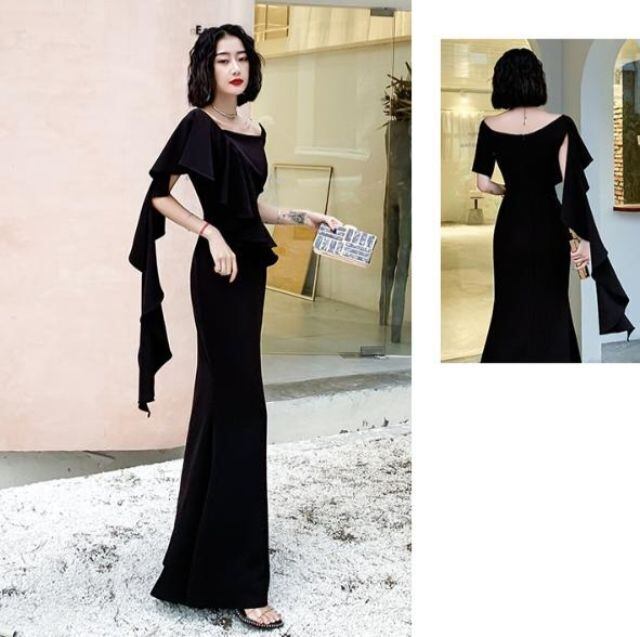 ケープ風 デザイン 半袖 ロングドレス スリット入 タイトシルエット XS〜4L ka231