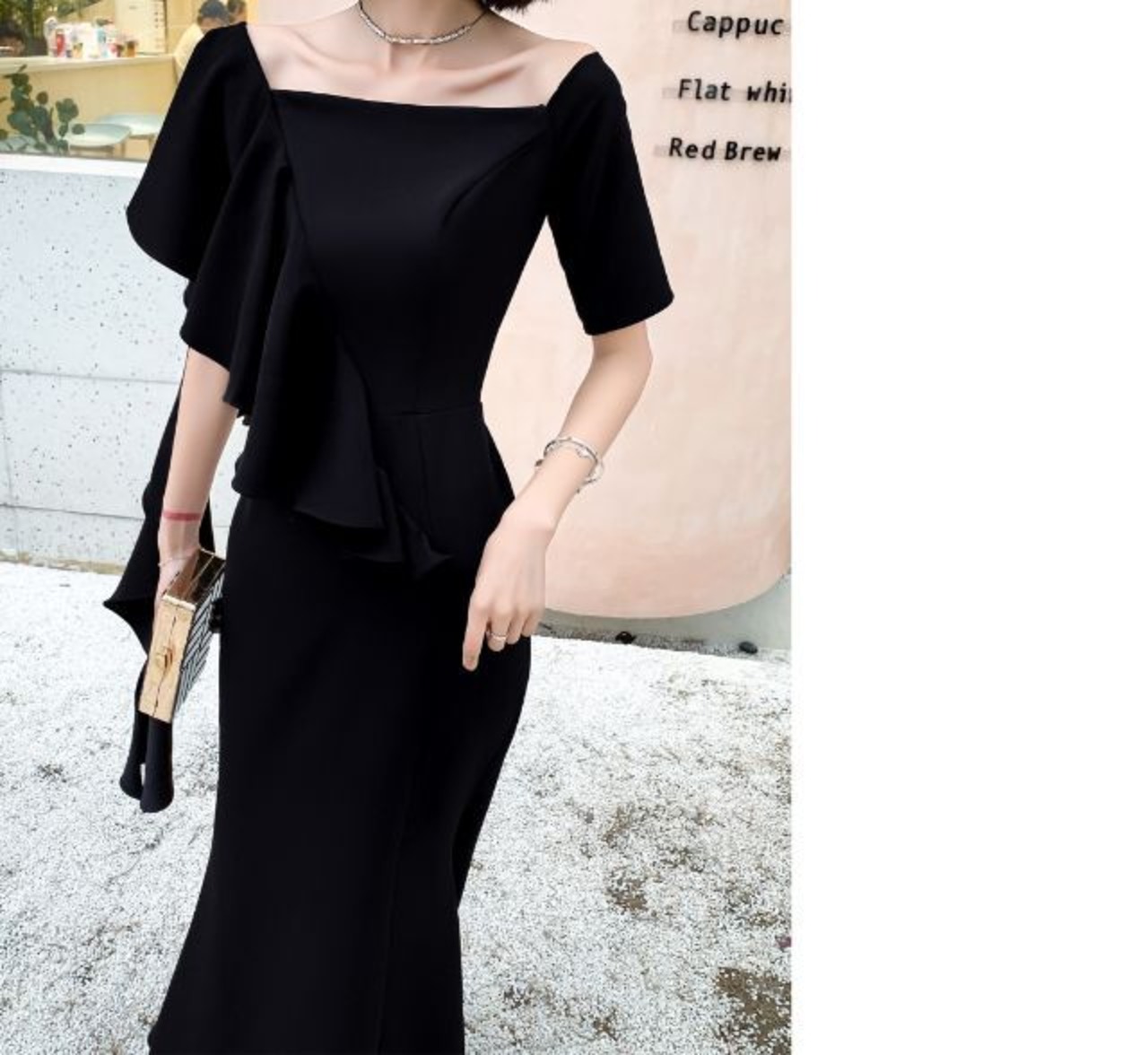 胸元のフリルデザインや足元のスリットがとってもお洒落な