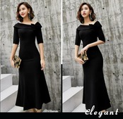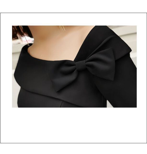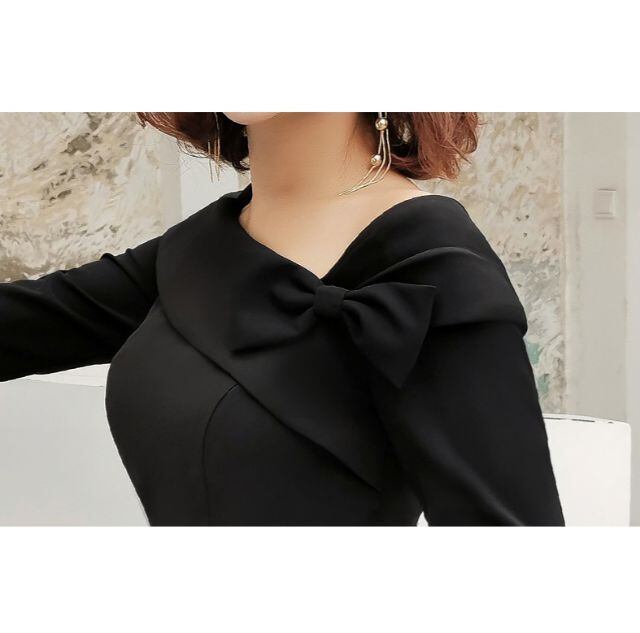 エレガント シンプル ブラックドレス フィッシュテール リボン XS〜3L ka232