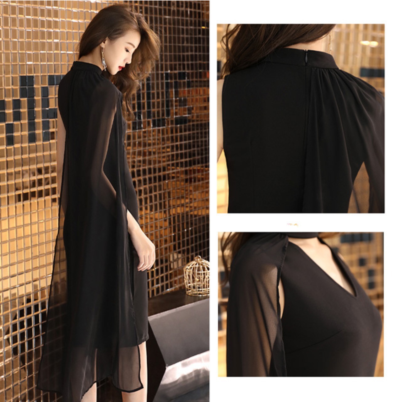 ケープ付き ノースリーブ ワンピースドレス ka289