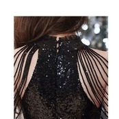 スパンコール セクシー ノースリーブ スタンドカラー ミディアム ブラック ka422