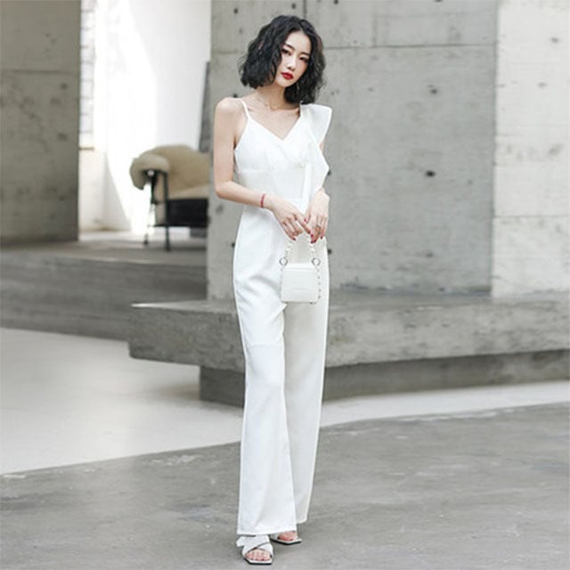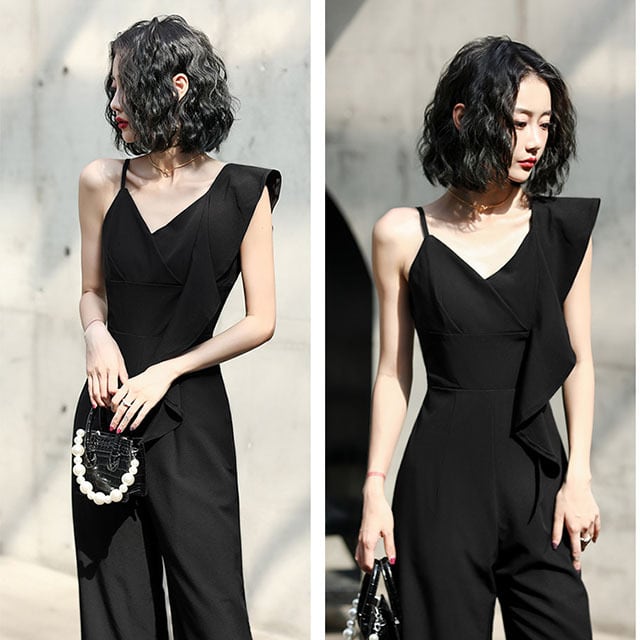ラグジュアリー デザインスリーブ Vネック パンツ 2colors ka445