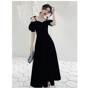 エレガント ベルベット 半袖 ホルターネック ミディアム ブラック ka466