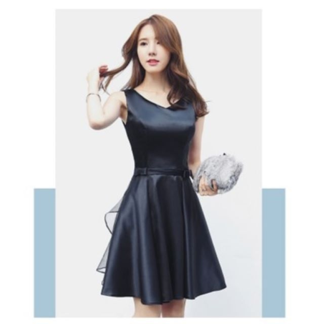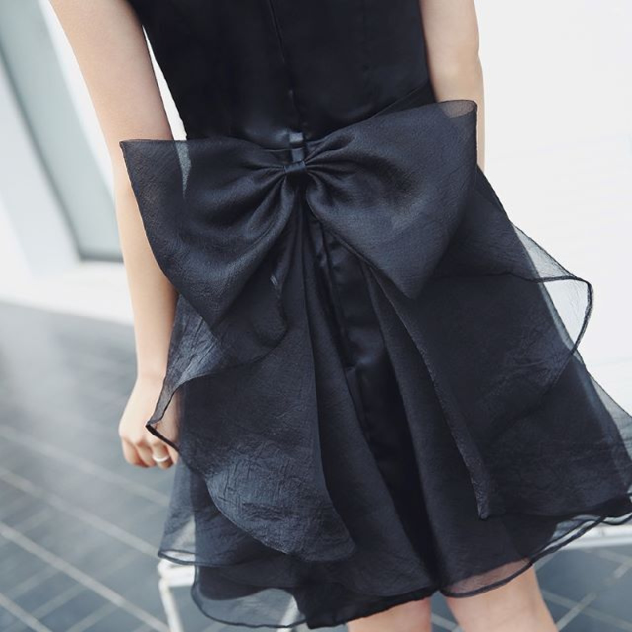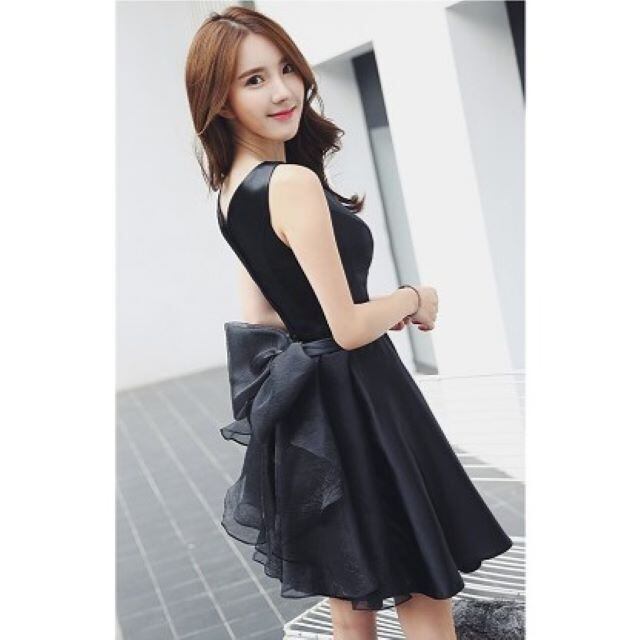 パーティードレス リボン ノースリーブ Vネック ショート ブラック ka521