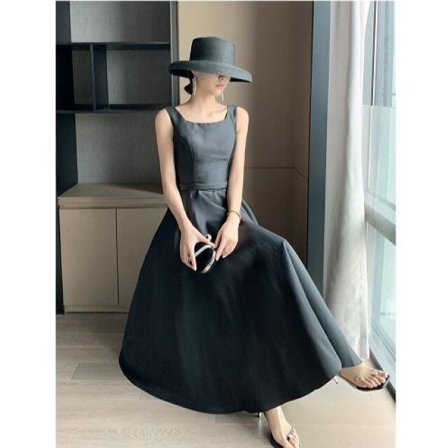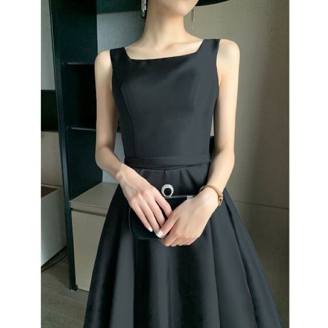 エレガントドレス リボン ノースリーブ Uネック ロング 2colors ka523