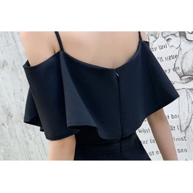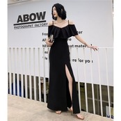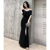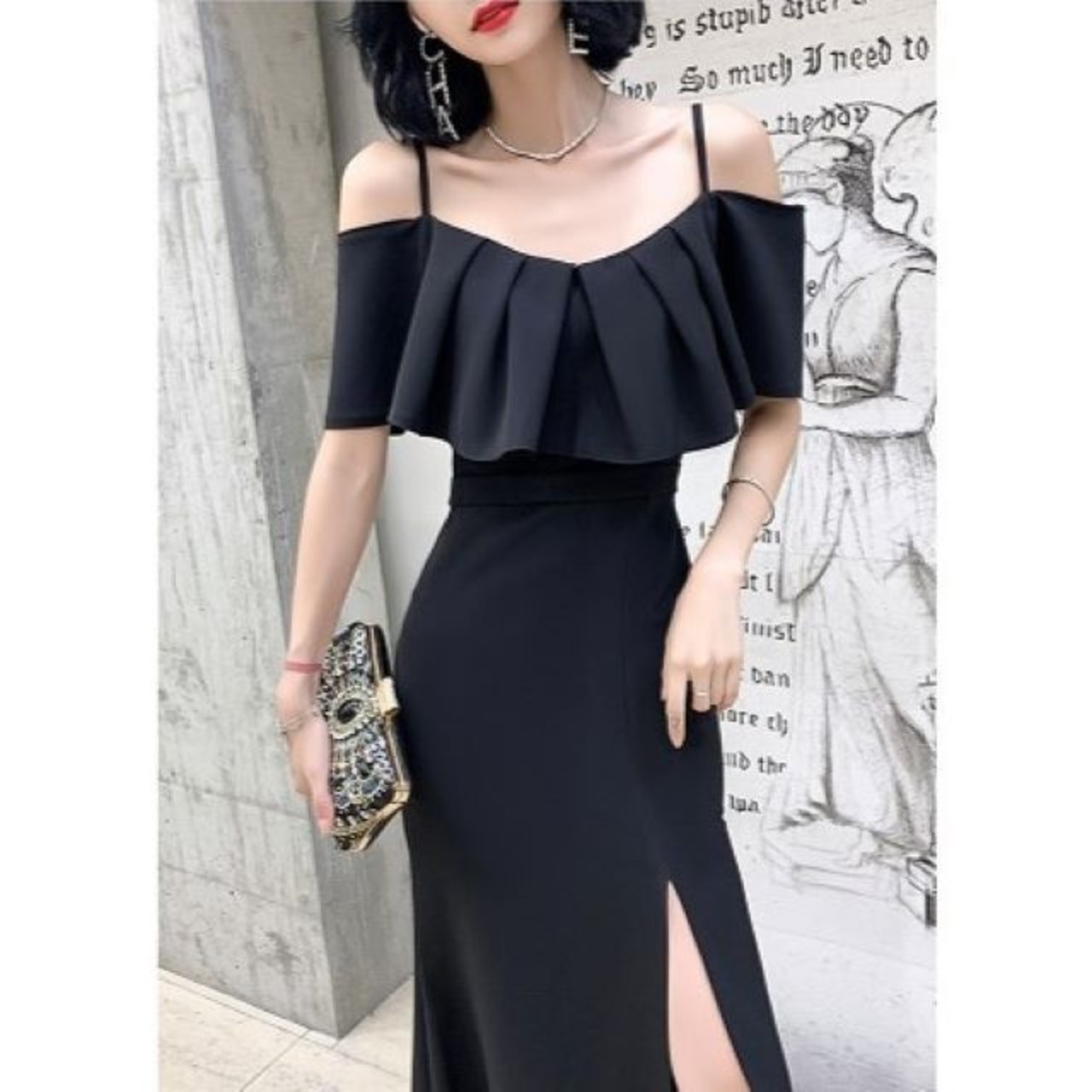エレガントドレス スリット ノースリーブ ストラップショルダー ロング ブラック ka532