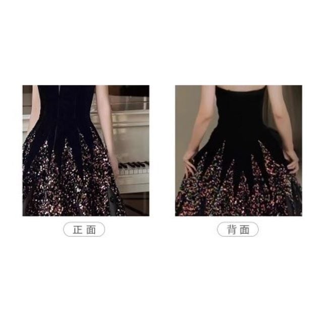 スパンコールが散りばめられたシャイニーな生地は、ライトの下できらめきを放ち、周囲の視線を魅了します。
